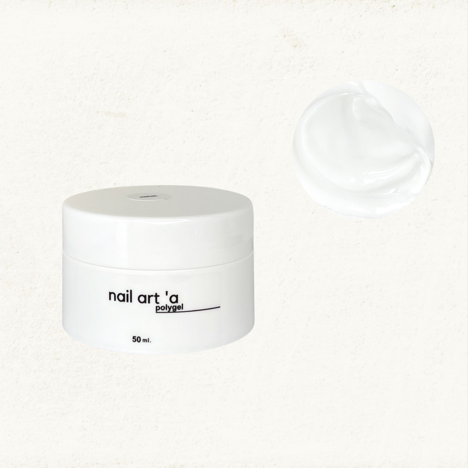 Nailarta poligelis White – itin gerai nešiojasi, tai hibridinė medžiaga, sudaryta iš gelio ir akrilo mišinio. Nekaista lempoje,  labai lengvai dildžiuojasi, dulkės sunkios, krinta žemyn, neskinda ore.